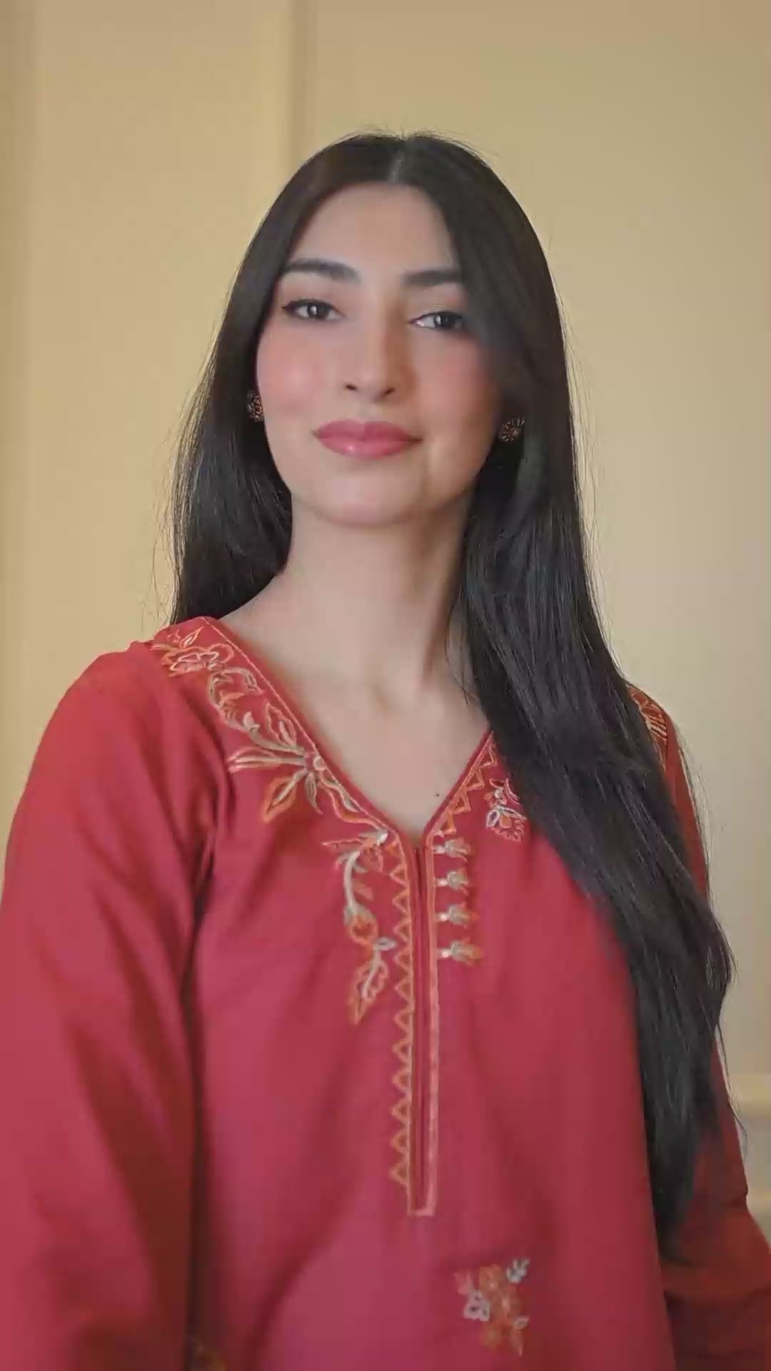 'Mattone Rust is crafted from Karandi and delicately embroidered. It’s a two piece ensemble paired with a shalwar.